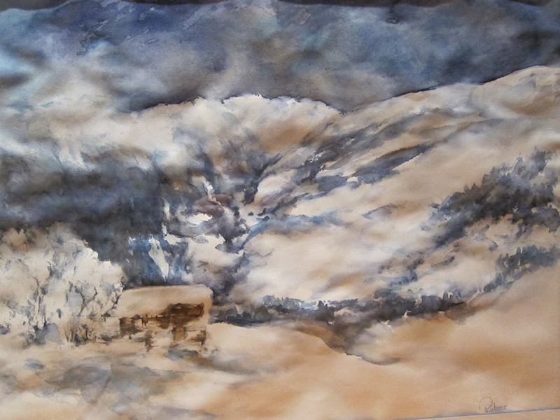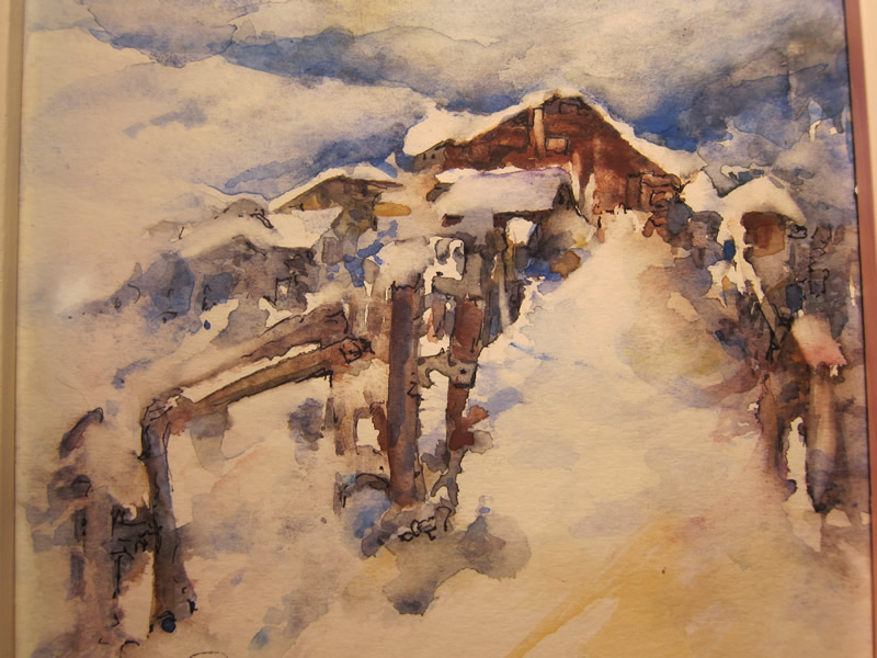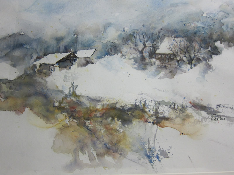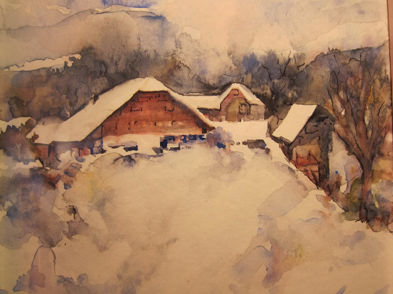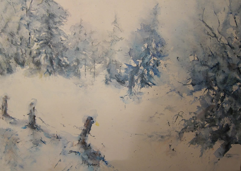 Gerade die Aquarell-Technik mit ihrer Möglichkeit des "weiss-lassens" bietet sich an um Winter-Motive überzeugend umzusetzen.